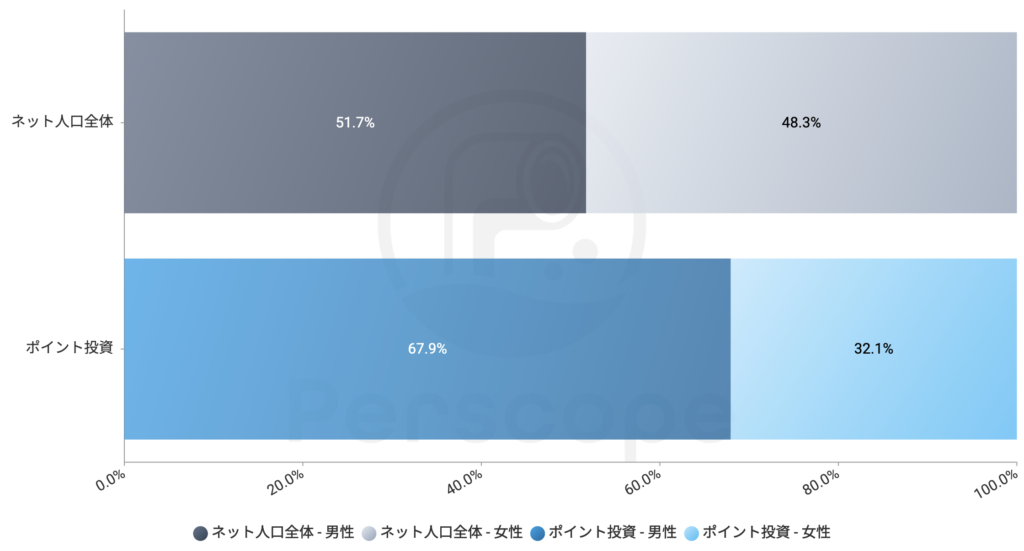 「ポイント投資」検索者の属性を見てみましょう。まず、性別です。