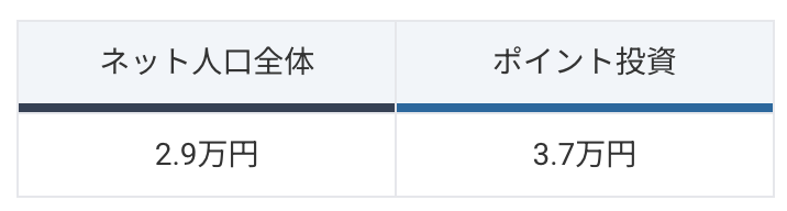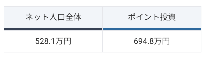 1か月に自由に使えるお金は、インターネット人口全体と比較して、「ポイント投資」検索者のほうが8,000円多いことがわかります。